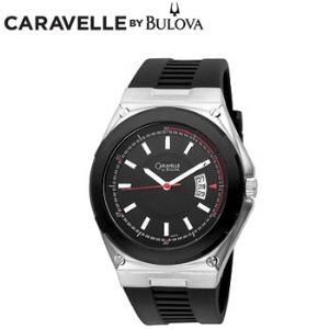 • Complement your sleek contemporary wardrobe with the Caravelle by Bulova® Men's Black Dial Strap Watch.